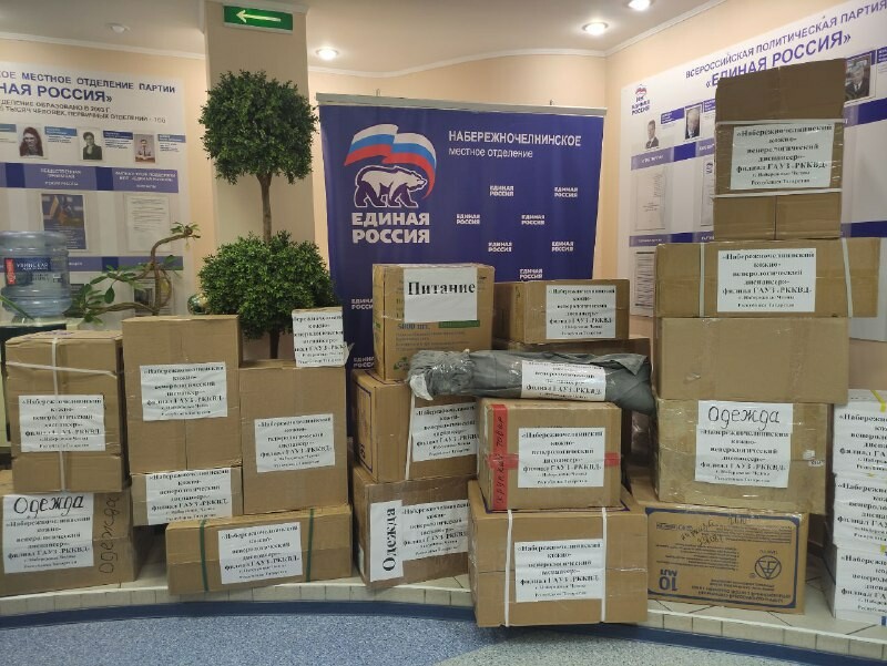 Набережночелнинское отделение партии «Единая Россия» предоставило грузовой автомобиль, который доставит эту гуманитарную помощь в региональное отделение партии в город Казань.