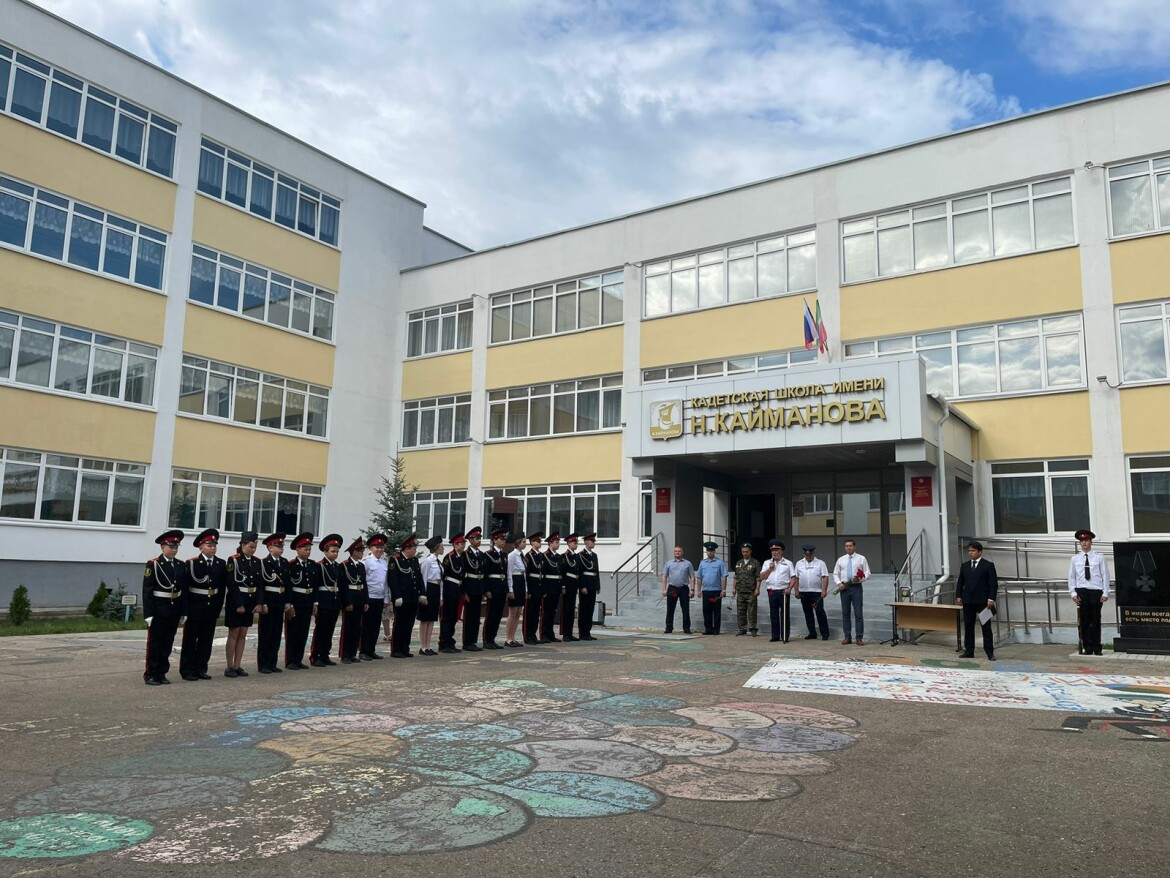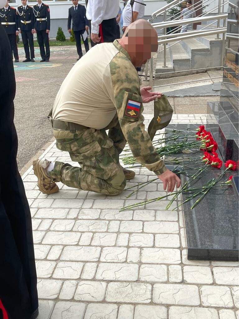 Участники церемонии почтили погибших солдат минутой молчания и возложили цветы к стеле погибшим курсантам кадетской школы.