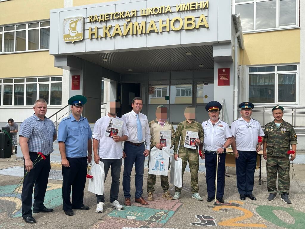В церемонии приняли участие военнослужащие и их семьи, подполковник Росгвардии, ветеран боевых действий Георгий Маканов, старшина поста пограничного контроля аэропорта Бегишево Александр Рябцов, директор кадетской школы № 47 им. Кайманова Александр Помыткин и другие.