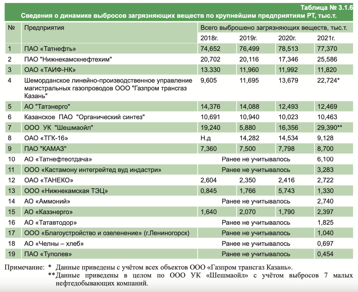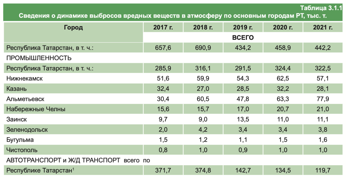 От ТГК-16 данных в госдокладе нет. В документе отмечается, что компания предоставила сведения в тоннах условного топлива, что не позволило «привести расход топлива к единому показателю и провести анализ его расхода по видам». «Масса выбросов зависит от многих факторов – структуры топливного баланса, качества топлива, объемов отпуска тепловой энергии на теплоснабжение населения и промышленных предприятий, которая производится в комбинированном режиме совместно с производством электрической энергии. В 2021 году все эти факторы сложились таким образом, что привели к снижению массы выбросов», – объяснили «Татар-информу» в компании.