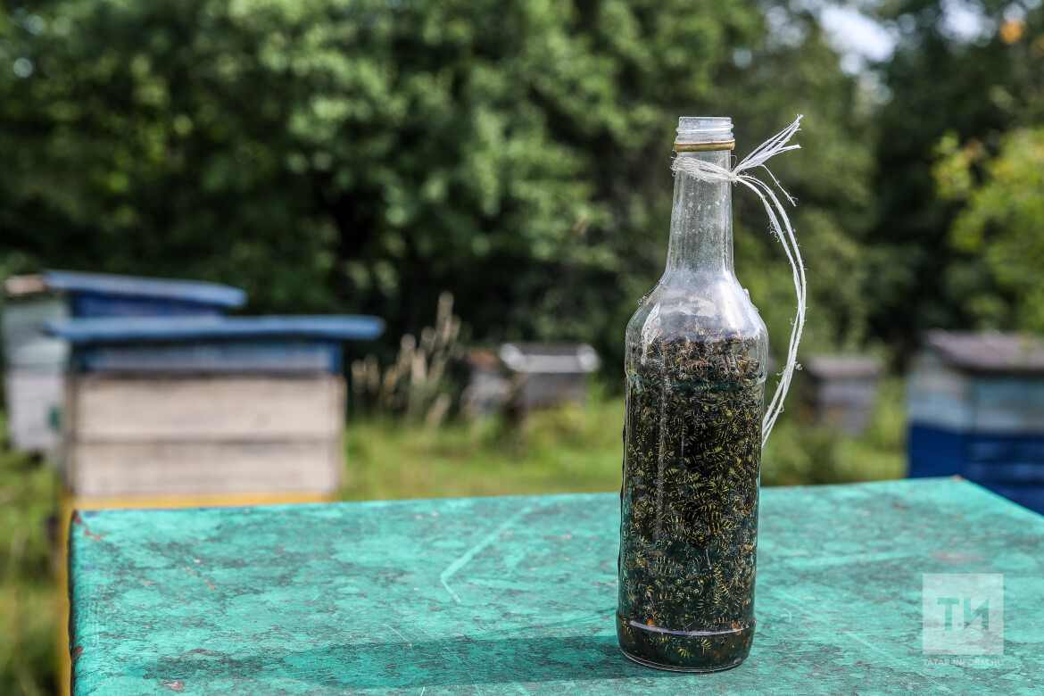 Расположенные в лесу пасеки Фирдината Вафина также подвергаются нападению ос. Научное название – филант, в народе его называют «пчелиный волк». Размерами он в несколько раз превышает пчелу, одна особь способна убить в среднем 25 пчел в день. Фирдинат Вафин борется с хищником с помощью ловушек, которые делает из воды, сахара и дрожжей. Забродившую жидкость в бутылке подвешивает на дерево, запах привлекает ос, и они тонут в этой жидкости. Такая ловушка безопасна для пчел.