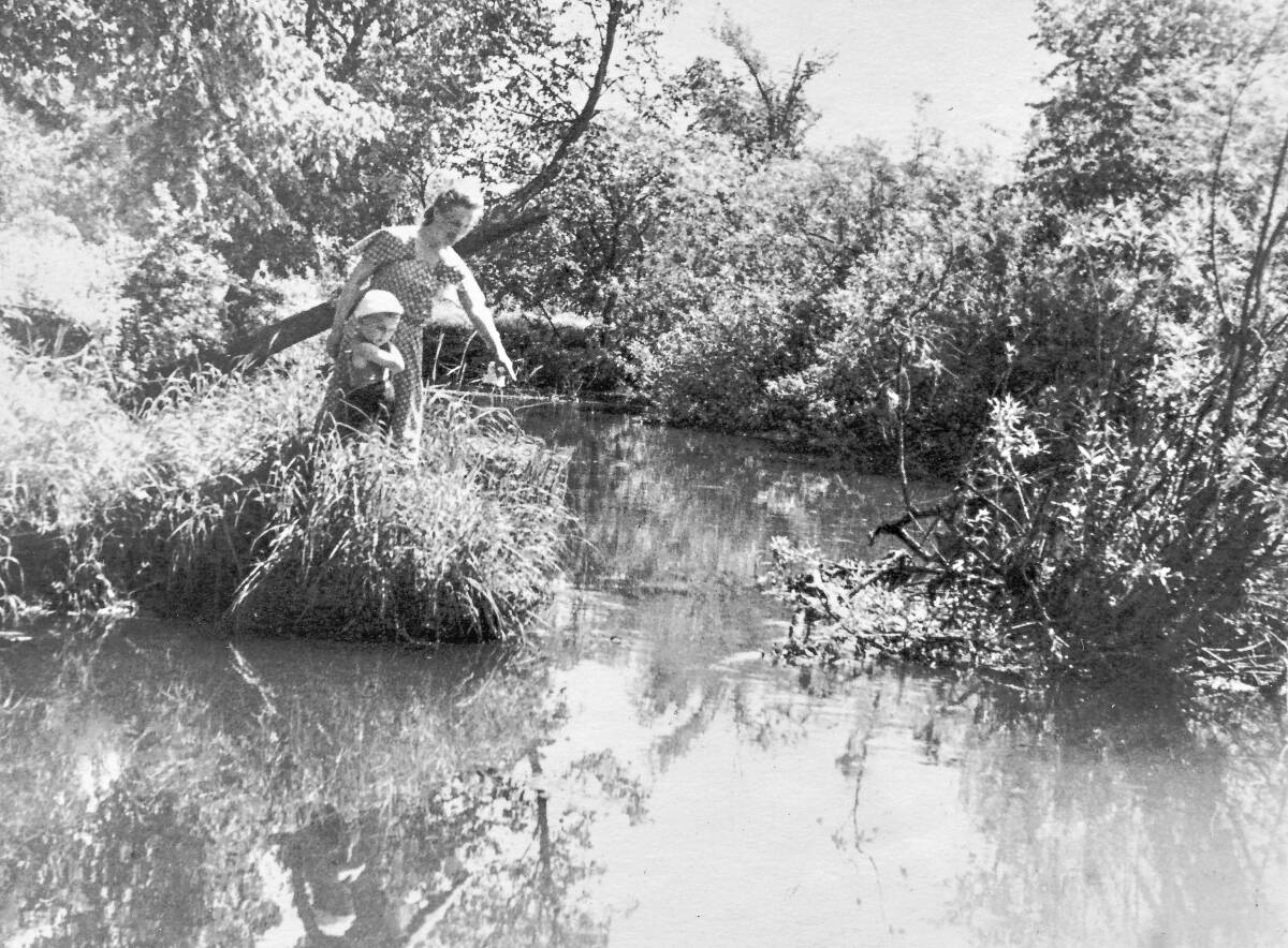 С. Сулейманова с сыном Ильдаром. На берегу р. Зай, Альметьевск, 1956 год