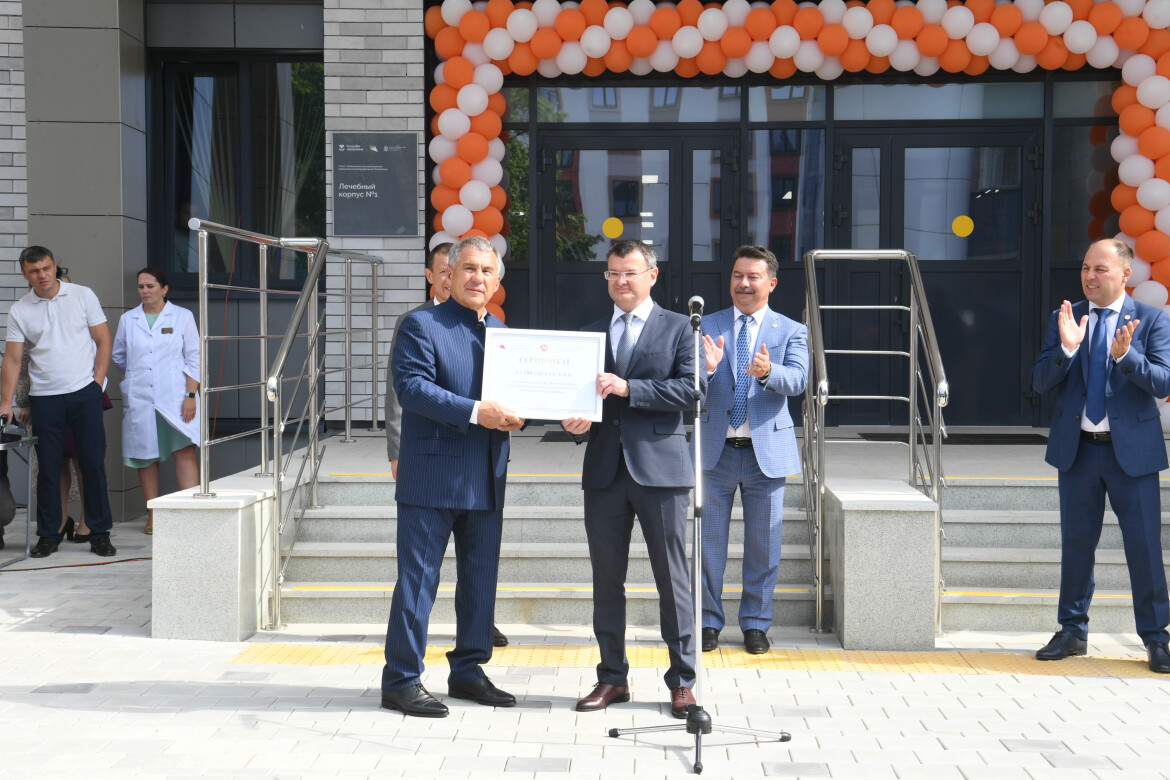 «Сегодня мы открыли две прекрасные школы и детский сад, сейчас посетим новый медицинский корпус. Сегодня Нижнекамск — это столица нефтехимии, крупнейший промышленный центр для всей России. И качество жизни напрямую связано с качеством здравоохранения. Поздравляю вас с этим событием! Берегите себя! — пожелал собравшимся Рустам Минниханов. — Вокруг много людей заболевают ковидом. Мы-то можем поболеть, а без вас кто нас будет лечить? Главное, чтобы вы не болели».