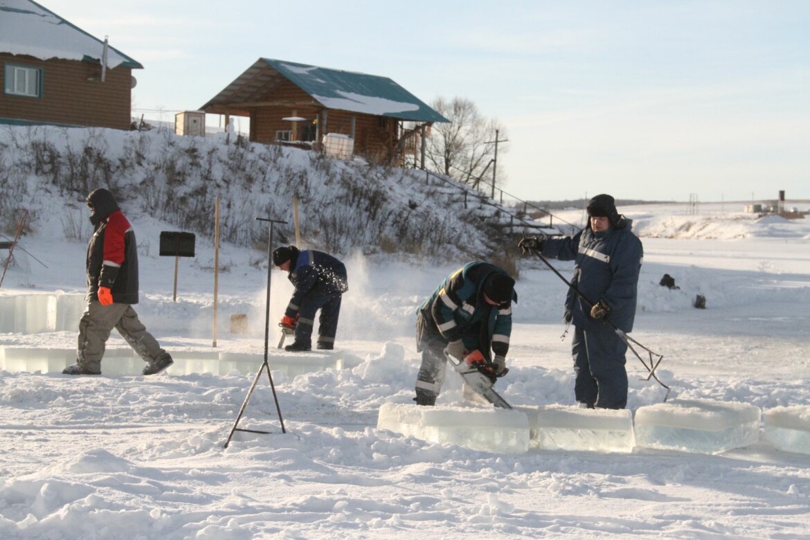 Всего мастерам надо заготовить примерно 400 куб. метров льда. Вырезанные из него плиты строители используют для стен ледяного лабиринта, оснований для горок и других элементов новогоднего городка.