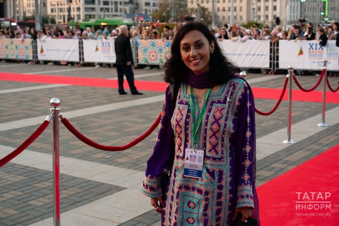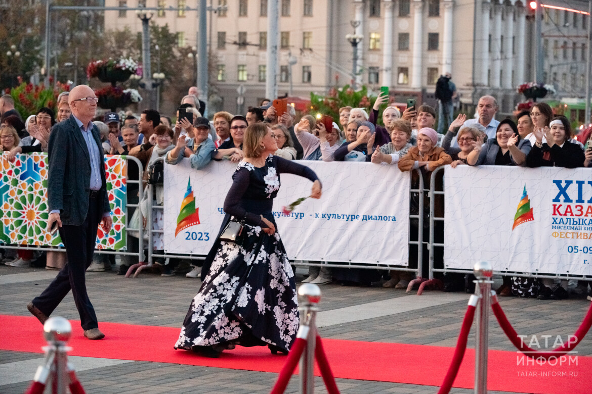 Церемонию открытия предварял традиционный проход по красной ковровой дорожке. Интересными оказались пары, образованные для выхода татарстанских VIP-дам фестиваля. Директор «Татаркино» Миляуша Айтуганова прошла этот путь в компании генконсула Казахстана в Казани Ерлана Искакова.