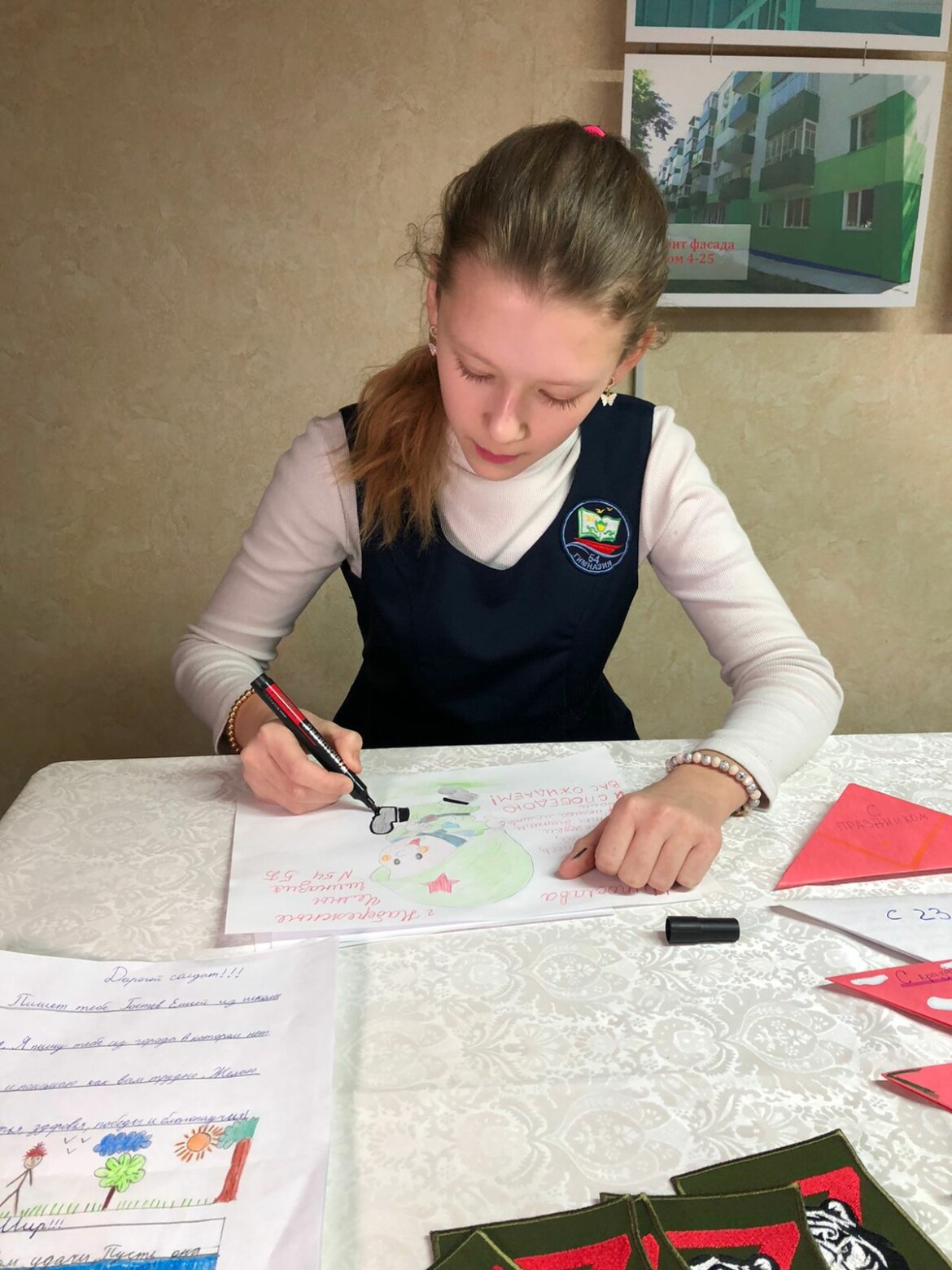 «Я сегодня нарисовала рисунок такой, где идет солдат веселый. И желаю, чтобы солдаты также все шли здоровыми, счастливыми, с победой», — сказала девочка.