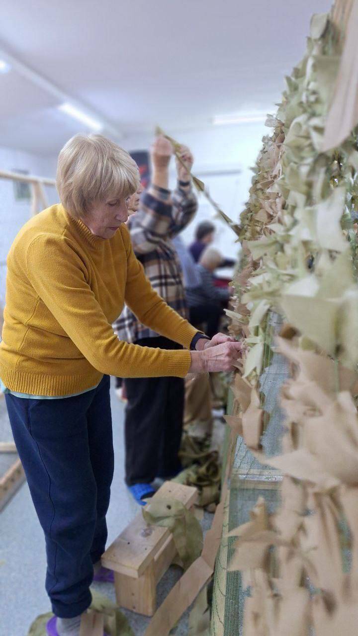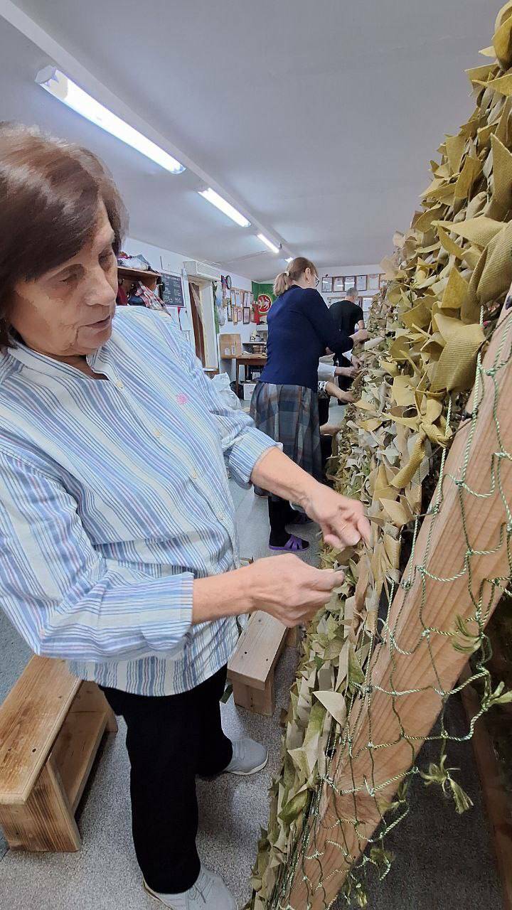 Основное направление работы — это, конечно, плетение маскировочных сетей. Также здесь занимаются пошивом костюмов «лешего» для снайперов, нашлемников, балаклав, флисовых толстовок, изготовлением супов, сухого душа.