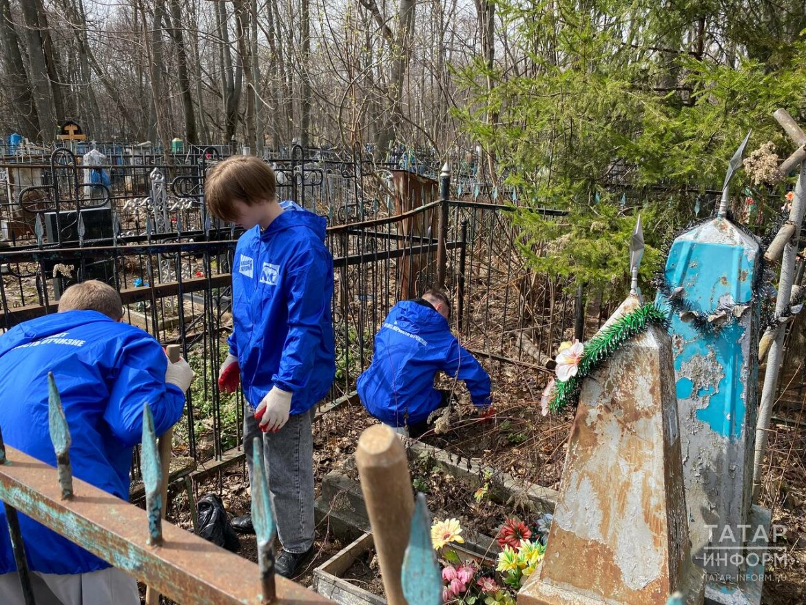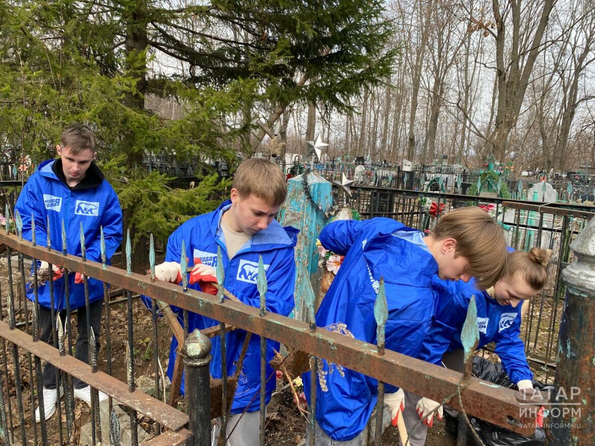 Сегодня на Арском кладбище в Казани волонтеры движения «Молодая гвардия» занялись благоустройством могил ветеранов Великой Отечественной войны.