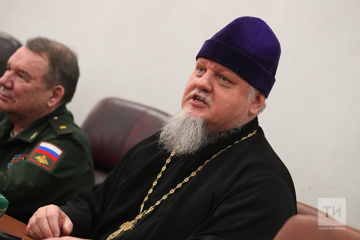 Протоиерей Владимир поздравил всех ребят с Пасхой и Ураза-байрам. Он рассказал призывникам о необходимости защищать Родину и гордиться ею.