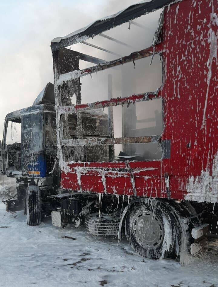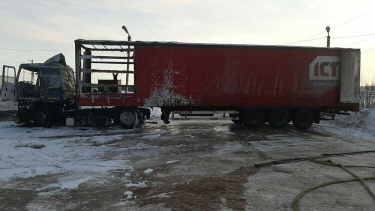 На месте выяснилось, что водитель грузовика пытался сам потушить авто, но не смог и получил ожоги.