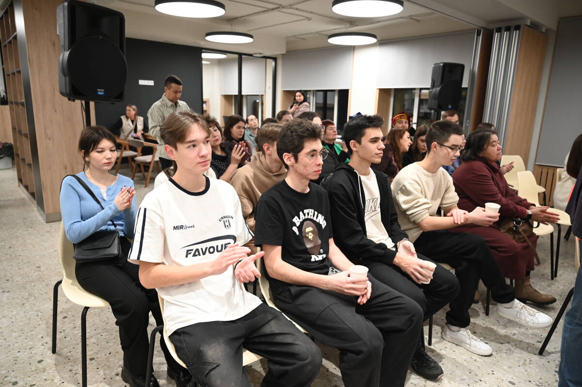 Во встрече приняли участие также студенты ВШН, учащиеся лицея № 1 им. Р. Фахреддина, лицея-интерната, артисты татарского драмтеатра и члены Союза писателей РТ и литературно-творческих объединений. Модератор встречи, недавно назначенный ответственный секретарь Альметьевского отделения Союза писателей РТ Равиль Сабыр, представил казанских гостей.