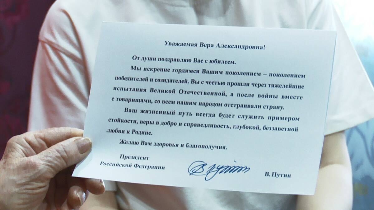 «Ваш жизненный путь будет всегда служить примером стойкости, добра и глубокой любви к Родине», — сказано в поздравлении Владимира Путина.