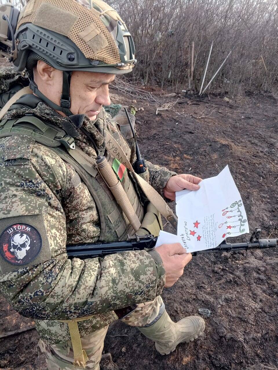 На передовой у многих есть свой талисман, который везде носят с собой. Обычно это что-то маленькое и связано с детьми военнослужащих: игрушка, аксессуар, письмо или рисунок. Виталий недавно получил письмо от девочки Айсылу, четвероклассницы из Высокогорского района. Брат посоветовал держать его в военном билете, как оберег, который будет воодушевлять и охранять.