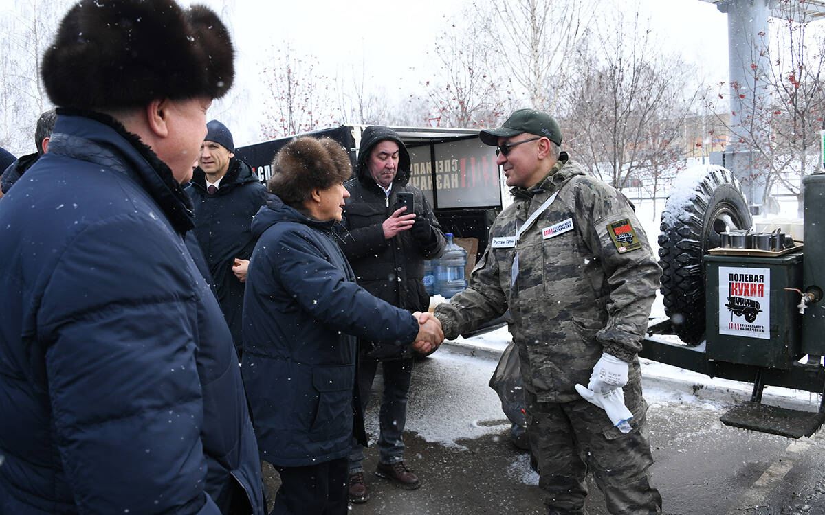 Он отметил впечатляющий результат работы полевой кухни Рустама Гатина и его команды, которые за 3 года приготовили 4 млн порций еды. Также привел в пример мэра Магдеева, который более 10 раз побывал с гуманитарной миссией в зоне СВО.