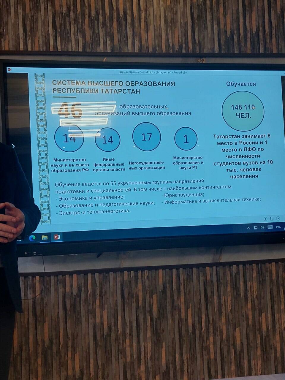 По словам первого заместителя министра образования и науки РТ Андрея Поминова, подготовка специалистов среднего звена в России и Таджикистане выстроена по очень близким системам. В своем выступлении он осветил вопросы организации системы высшего образования в Татарстане, подготовки кадров в транспортной отрасли, программ повышения квалификации и другие.