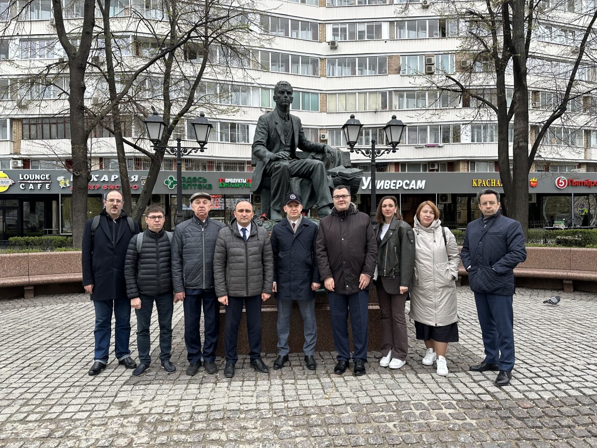 Делегация АО «Татмедиа» в рамках рабочей поездки в Москву посетила полномочное представительство РТ в РФ, Татарский культурный центр, а также возложила цветы к памятнику Габдуллы Тукая. Об этом сообщается на сайте полпредства.