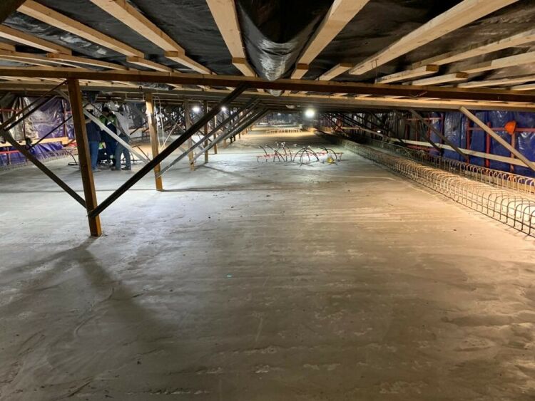 «Продолжается укладка ливневой канализации и устройство колодцев. На стройке заняты 83 инженерно-технических работника и 40 единиц техники», – отмечается в сообщении министерства.