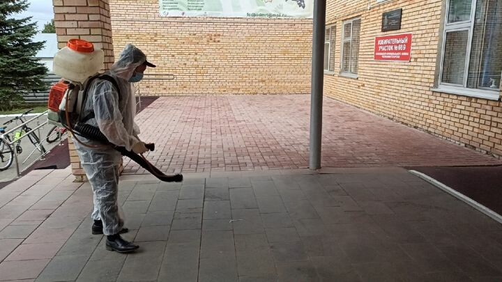 Входы и сами помещения для голосования обработали хлорсодержащим раствором. Дверные ручки, столы, кабинки и урны для голосования протерли 70-процентным спиртовым раствором. Делается это для снижения угрозы распространения Covid-19. Избирательные участки обрабатываются ежедневно после 20.00.