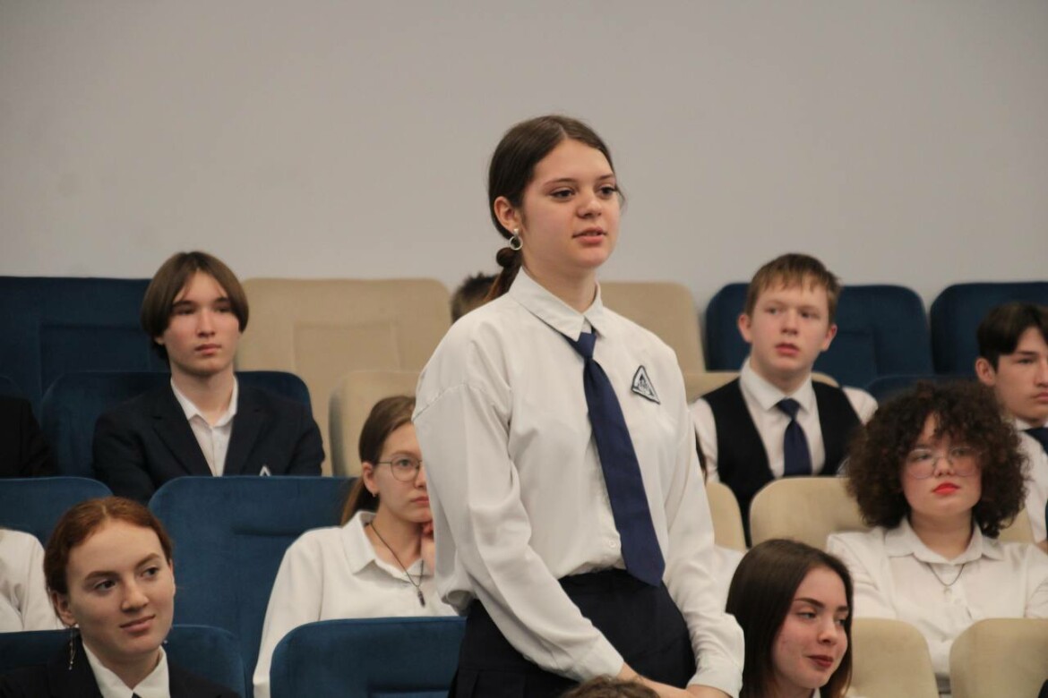 Ученики лицея «Потомки Менделеева» задавали вопросы. Темы разговора, признались после встречи они, оказались нестандартными и интересными. Вероника из 10-го класса спросила о самом запоминающемся событии на СВО, Данила интересовало, как военнослужащий справлялся со стрессом на передовой, а восьмиклассник Максим уточнил, что было наиболее ценным для Шарафиева в военной службе.