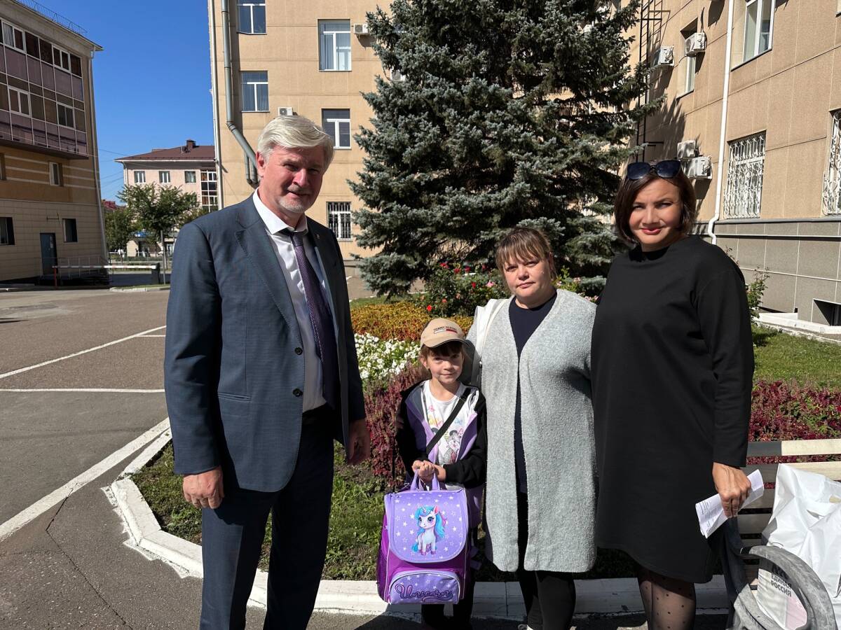 Гостей встретили мать бойца Светлана Михайловна и две его сестры. Младшей девочке, которая еще учится в школе, партийные активисты вручили рюкзак со школьными принадлежностями и сладкий подарок.