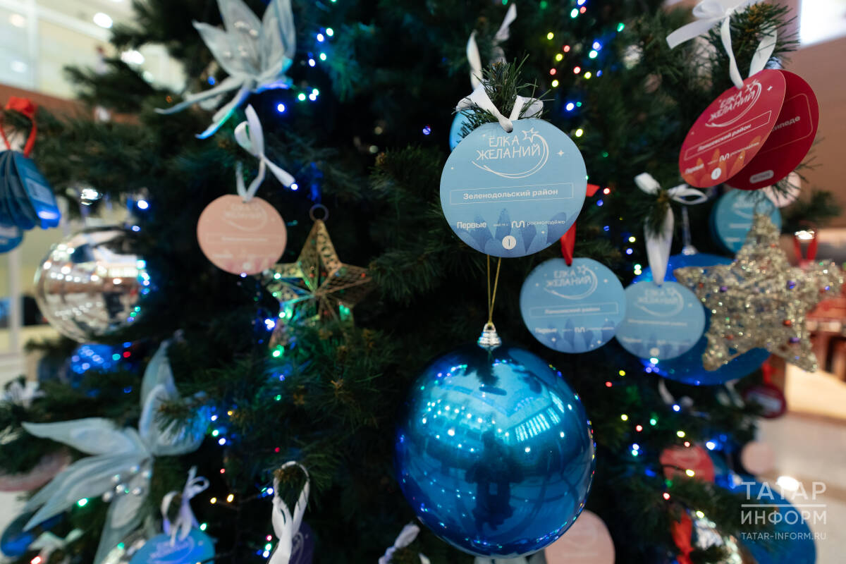 Секретарь Государственного Совета Лилия Маврина сняла елочные шары с желаниями трехлетней Эвелины, одиннадцатилетней Полины и тринадцатилетней Амелии из Казани. Девочки написали, что в качестве подарка на Новый год хотят получить интерактивную куклу, наборы для вышивания и рисования.