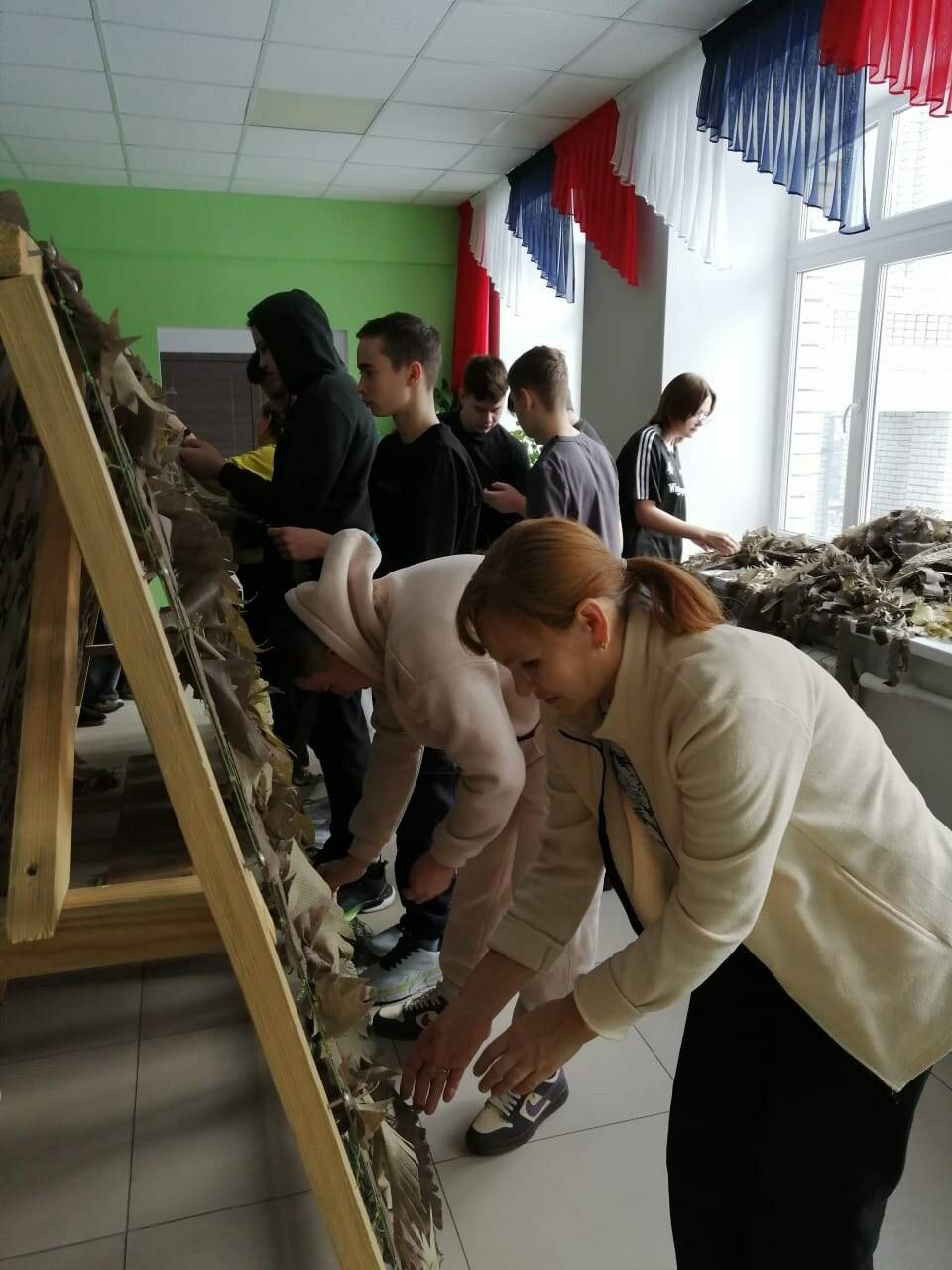 С лета прошлого года ученики классов с 6-го по 9-й приступили к плетению маскировочных сетей.