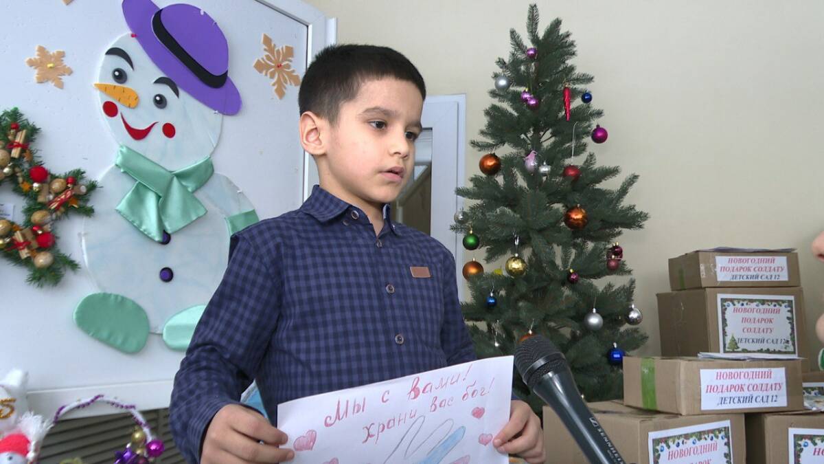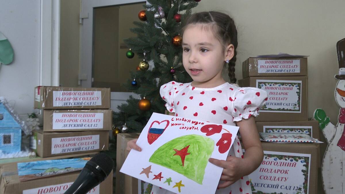 Детский сад №12 города Нижнекамска собрал партию новогодних подарков для военнослужащих. В акции приняли участие работники дошкольного учреждения, родители воспитанников и сами малыши, которые подготовили рисунки на военную тематику.