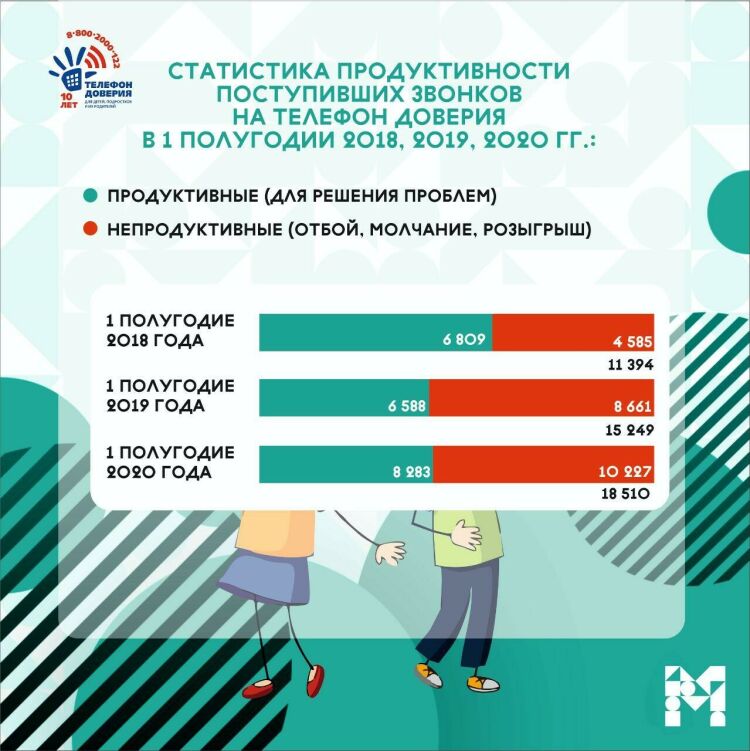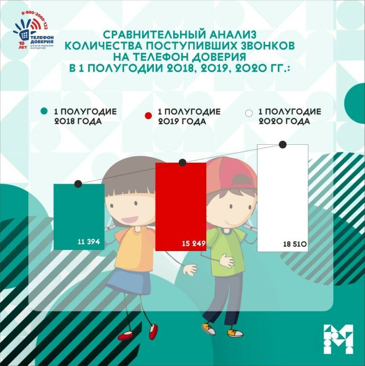 «Более 18 тыс. звонков поступило в первом полугодии 2020 года на детский телефон доверия (8-800-2000-122) в Республике Татарстан от детей, подростков и взрослых. Это на 21,4% больше, чем в прошлом году», — рассказали в пресс-службе.