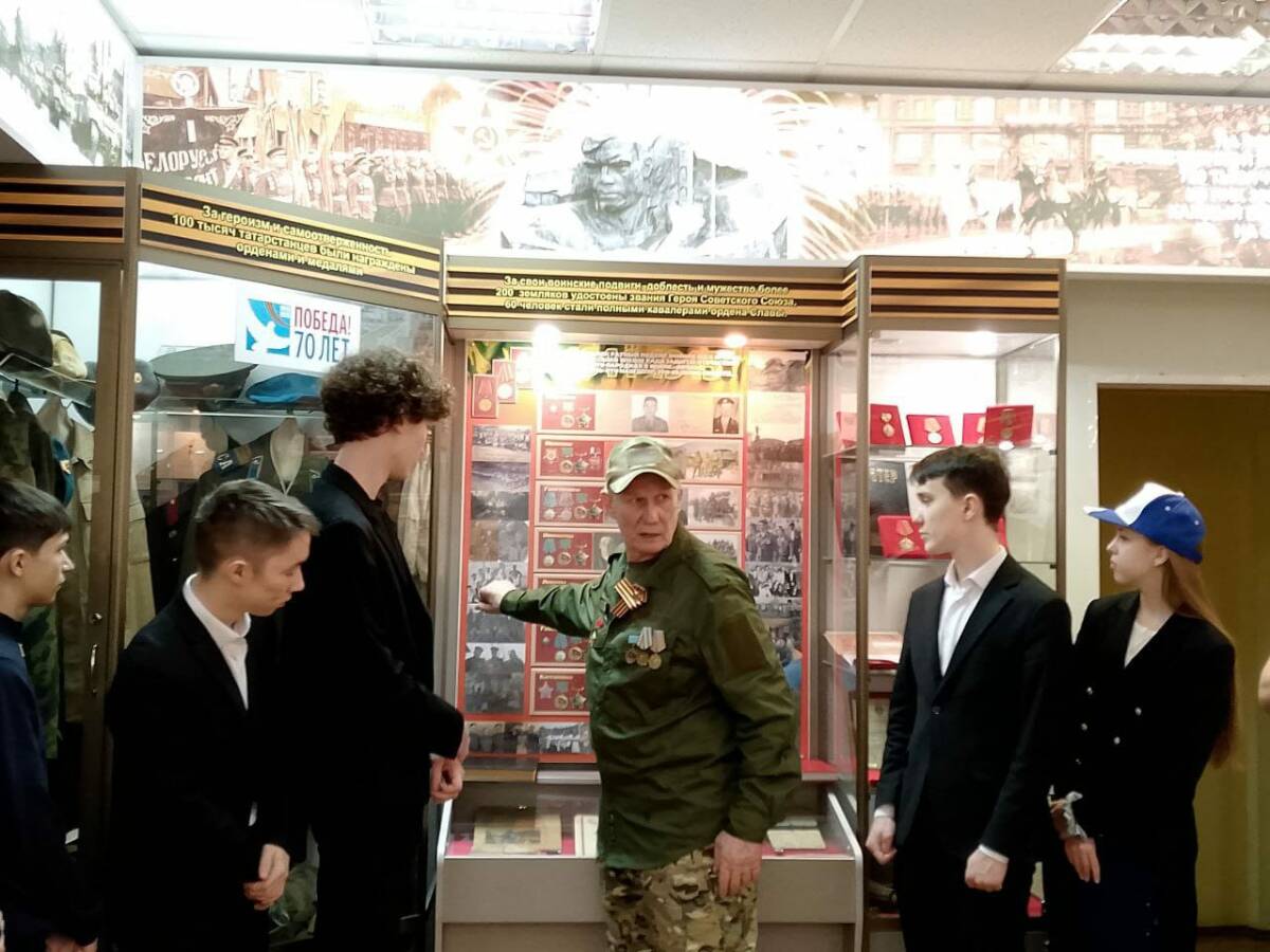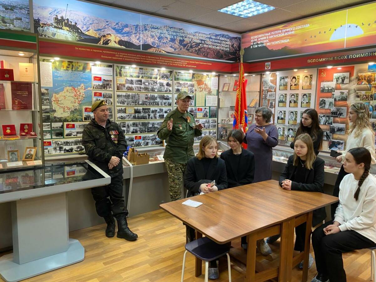 Школьники смогли пообщаться с ветеранами боевых действий: Асхатом Баталовым и Александром Голевым. Асхат поделился воспоминаниями о своем дедушке, ветеране Великой Отечественной войны, а Александр рассказал о своей службе в Чечне. В конце встречи, которая прошла в историко-патриотическом музее «Память», ветераны ответили на вопросы молодежи.