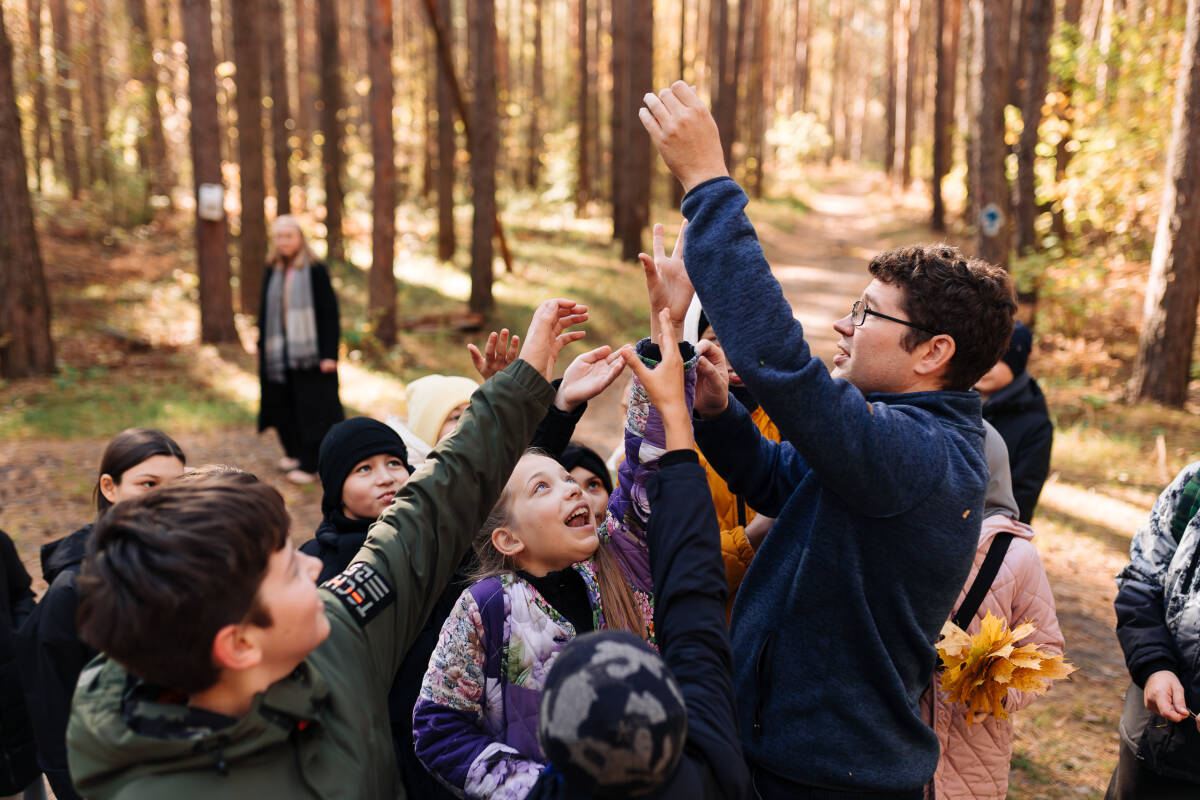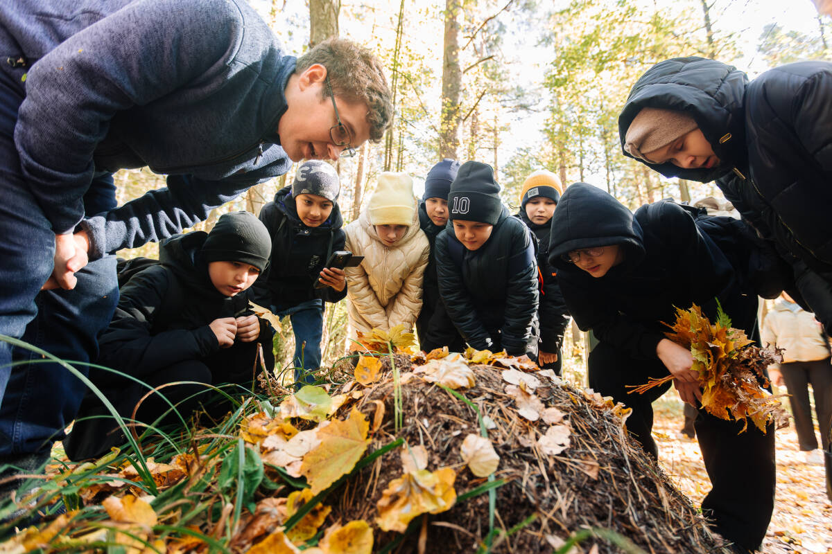 Ученики пятого класса школы №81 Кировского района Казани прошли по экологической тропе «Маршрут ежа» в лесопарке «Лебяжье». Экотропа создана СИБУРом в рамках проекта «Твои зеленые привычки».