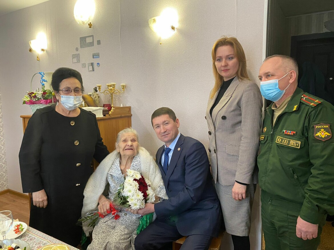 Долгожительницу с внушительной датой также поздравили глава района Ильхам Кашапов, военный комиссар Владимир Гузич, начальник отдела социальной защиты Дарья Юматова и председатель Совета ветеранов Ильгиза Файзуллина.