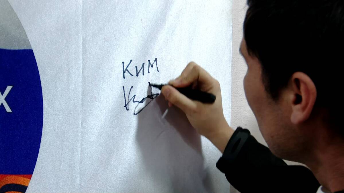 Во время краткосрочного отпуска Ким зашел в волонтерский штаб, где расписался на флаге и поблагодарил земляков за поддержку. Он признается: письма и посылки из дома на передовой имеют особую ценность.