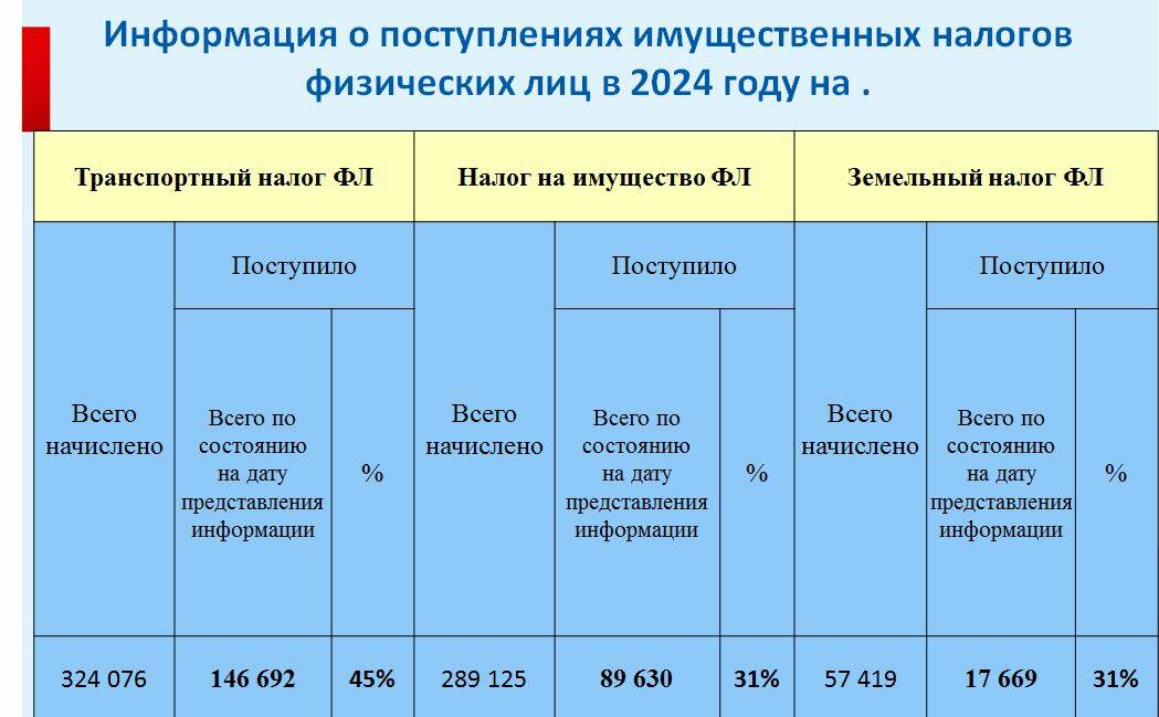 На 15 ноября от физических лиц по имущественным налогам поступило 254 млн рублей, или 38% от начисленных сумм (670 млн рублей). Всего с начала года по имущественным налогам поступило 293 млн рублей.