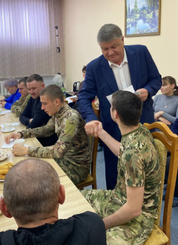 За чашкой чая глава муниципалитета пообщался с военнослужащими, выслушал, у кого есть вопросы, просьбы. На встрече присутствовали руководители социальных служб, которые помогут бойцам в решении их вопросов, а также волонтеры, которые формируют и доставляют гуманитарную помощь.