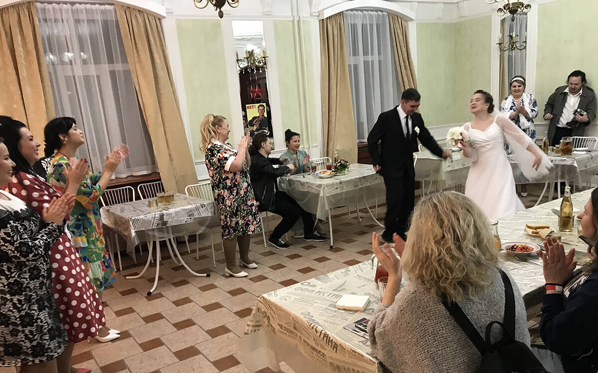 …Мы потанцевали на дискотеке той поры. Поучаствовали в митинге по поводу «Годовщины Великого Октября», где зрители (настоящие) искренне аплодировали докладчику. При этом милиция вывела наружу гиперактивную «вечную бабушку» (актеры). Погуляли на советской свадьбе с настоящими лимонадом и рыбными консервами. Так и подмывало что-то выкрикнуть душевное в адрес тостующих, но я боялся, что выведут. Замечание от милиционера все же получил за то, что мешал актерам...