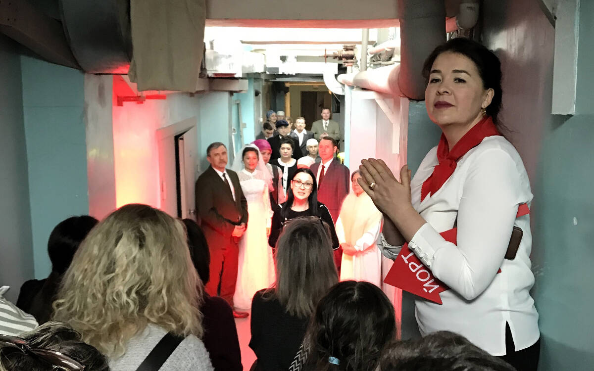 Началось с того, что в вестибюле возле гардероба нас, 17 зрителей, подвели к седовласой женщине, которая, как нам объяснили, будет вести нашу группу.