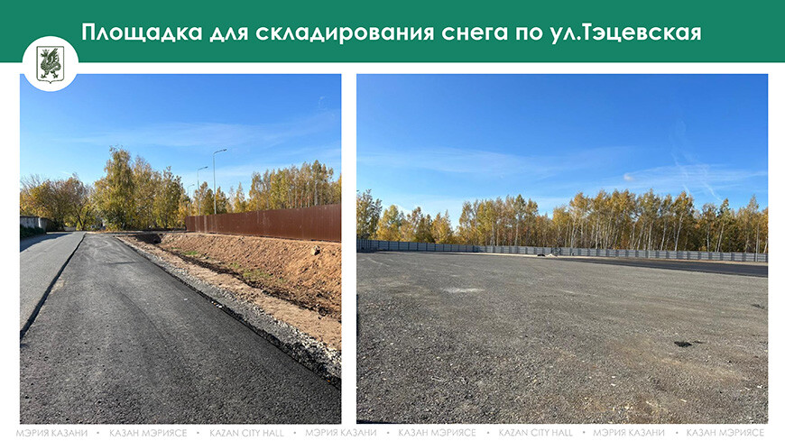 Помимо этого, на улице Тэцевская подготовили площадку для складирования снега площадью 12 тыс. квадратных метров. Отметим, что это первая подобная площадка в городе. Также на случай чрезвычайных ситуаций планируется дополнительно организовать 9 мест для временного складирования снега.