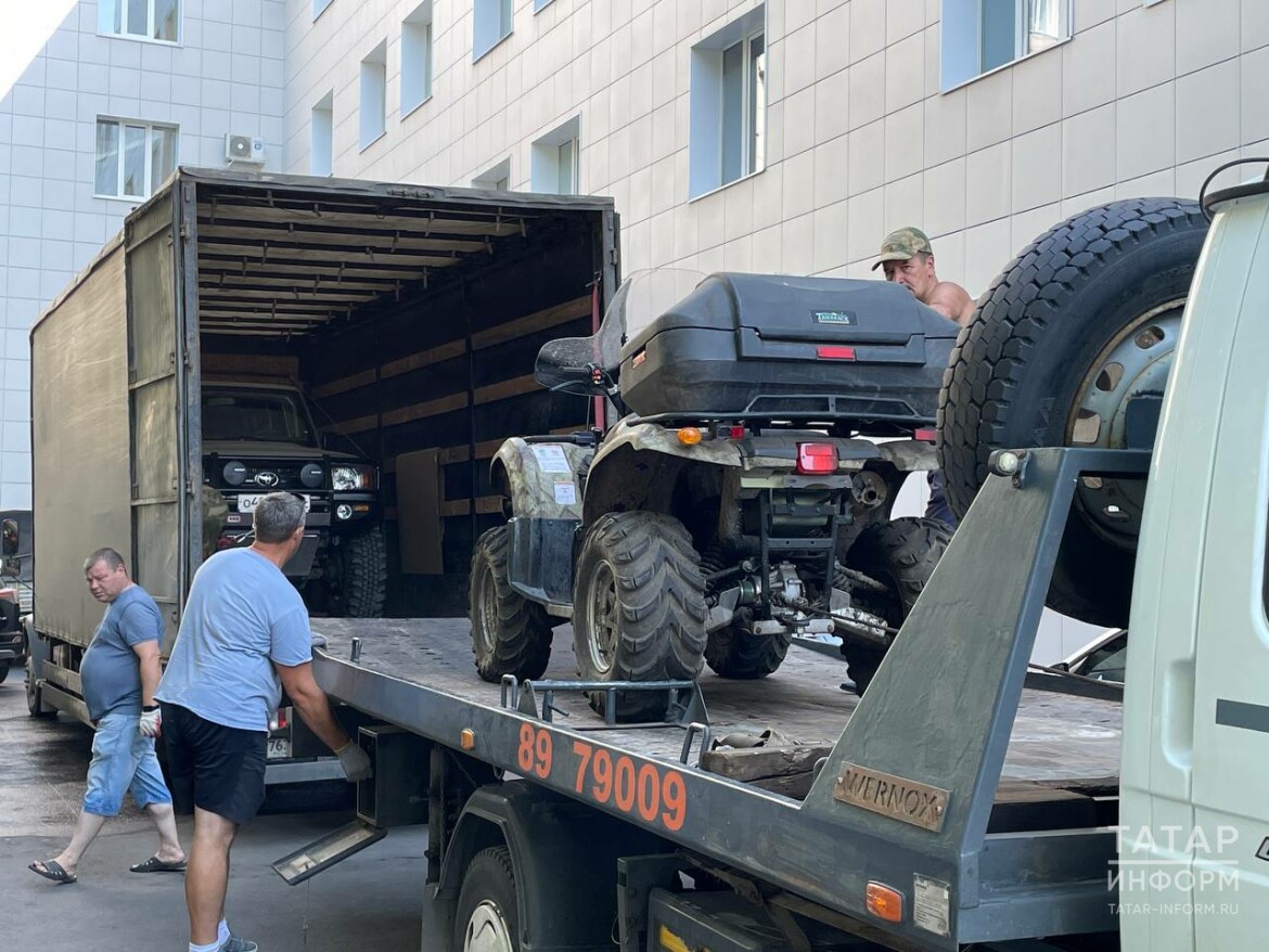 Сегодня из ДОСААФа РТ в зону специальной военной операции отправили партию гуманитарного груза и спецоборудования для контрактников из Татарстана. В две фуры погрузили автомобиль, квадроцикл и строительные материалы.