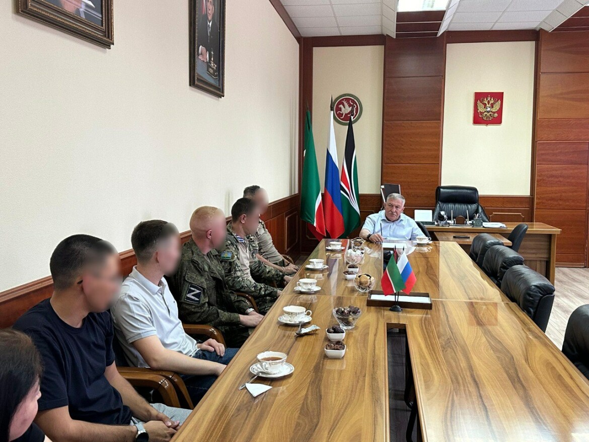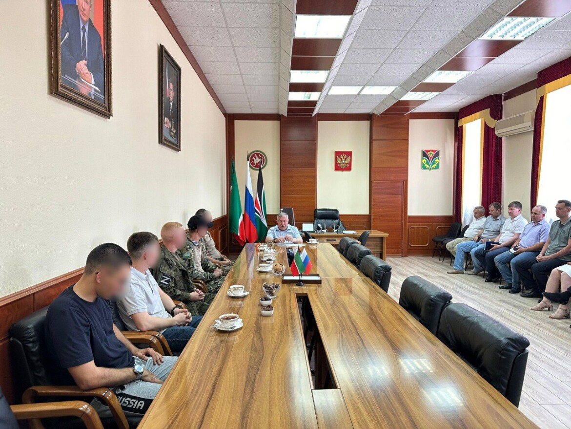 Глава Лениногорского района Татарстана Рягат Хусаинов встретился с военнослужащими, которые возвратились на родину в краткосрочные отпуска.