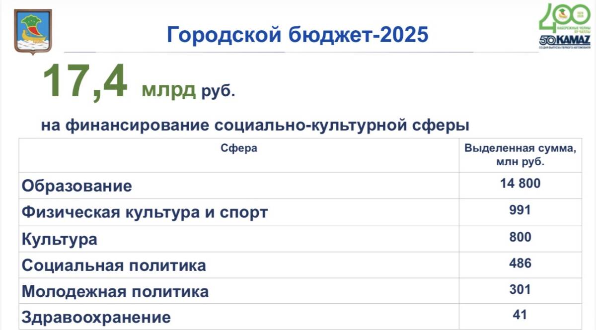 Доходы бюджета Набережных Челнов в 2025 году превысили 25 млрд рублей