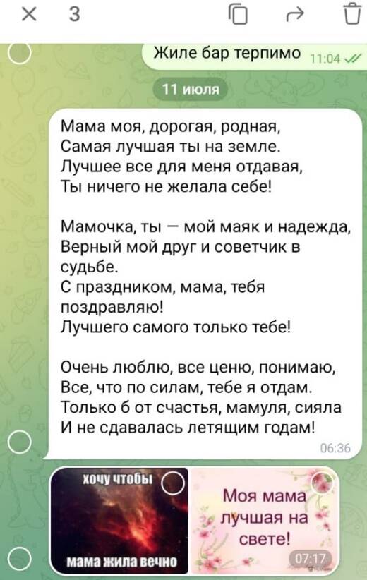 Каждое утро у них начинается с весточек. Мама: «Доброе утро, сынок! Как ты?» Сын: «Все нормально, мама! Как сама?»
