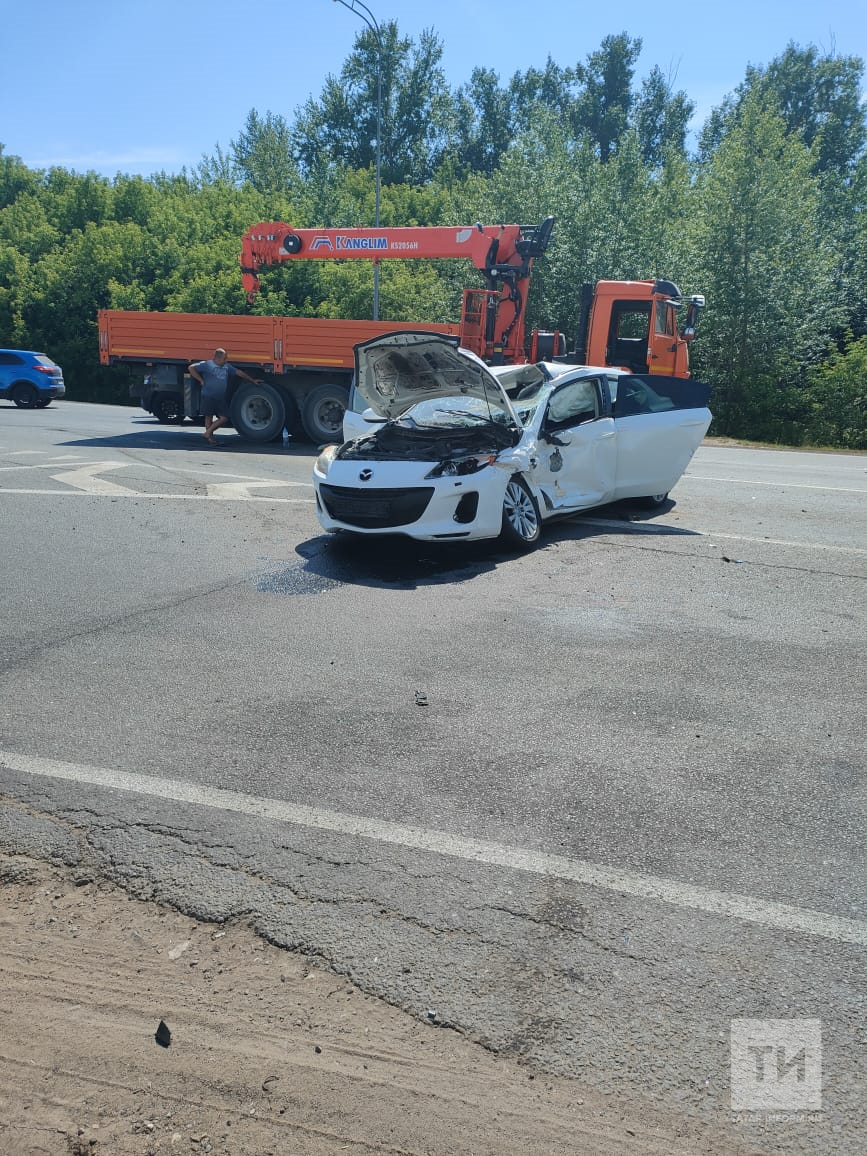 Как рассказали «Татар-информу» очевидцы, дорогу не поделили легковушка Mazda и погрузчик «КАМАЗ». Удар были такой силы, что японское авто развернуло поперек дороги.