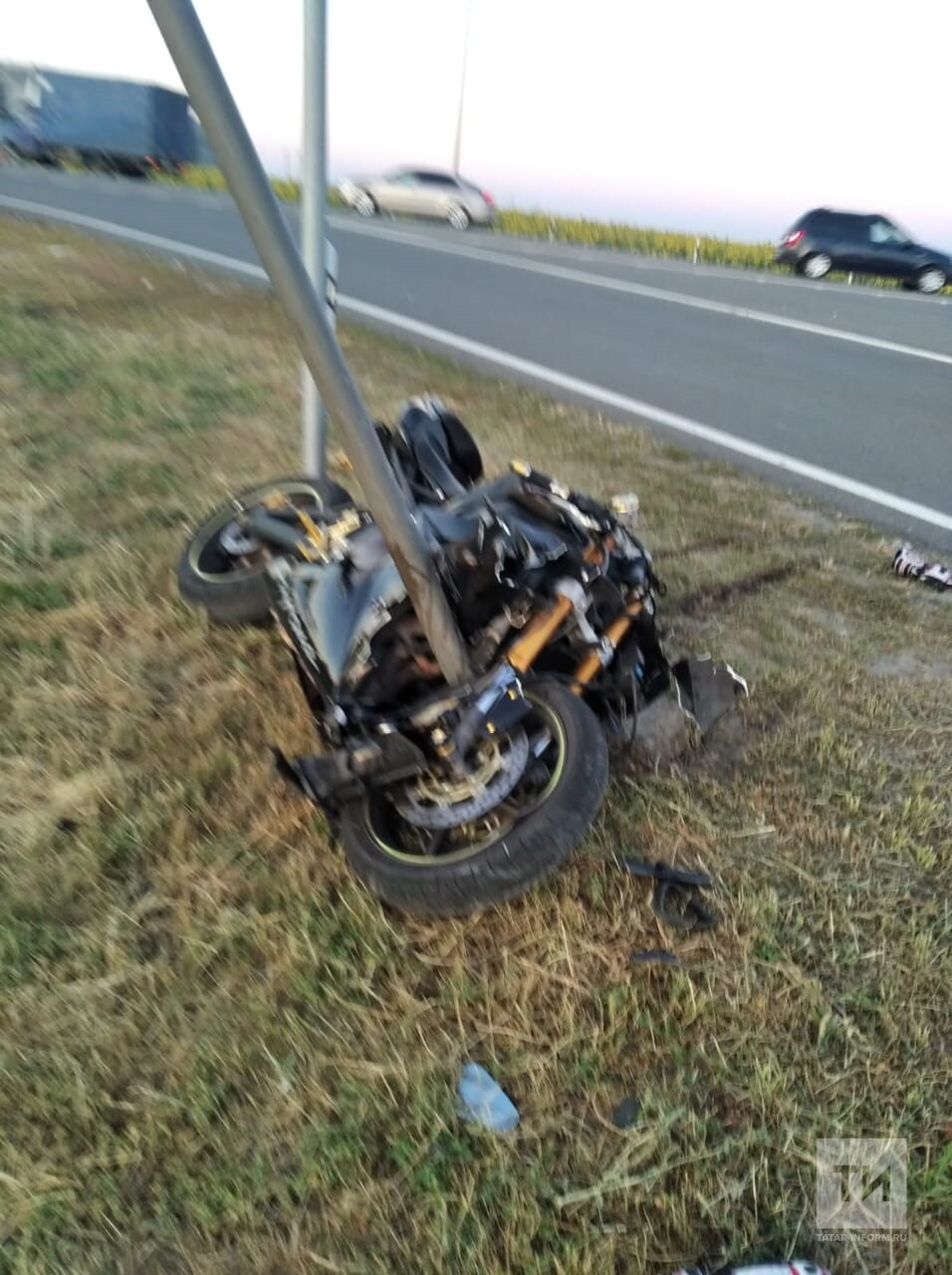 ДТП произошло сегодня около семи часов вечера на трассе Алексеевск – Высокий Колок в Алькеевском районе республики, рядом с поворотом на село Базарные матаки. В результате аварии мотоцикл застрял в указателе.