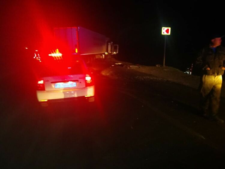 Удар был такой силы, что отечественный авто откинуло с дороги в кювет, а большегруз развернуло поперек дороги.
