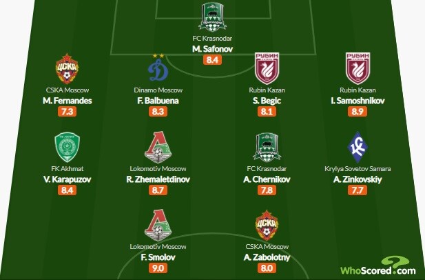 Два игрока «Рубина» попали в сборную 1-го тура РПЛ по версии аналитиков WhoScored