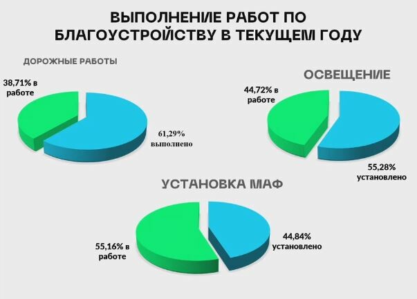 Виды работ остаются прежними, всего их шесть: ремонт дорог и тротуаров, наружного освещения, установка скамеек и урн, площадок ТКО, детского и спортивного оборудования с покрытием площадок песчано-гравийной смесью, частичное озеленение.
