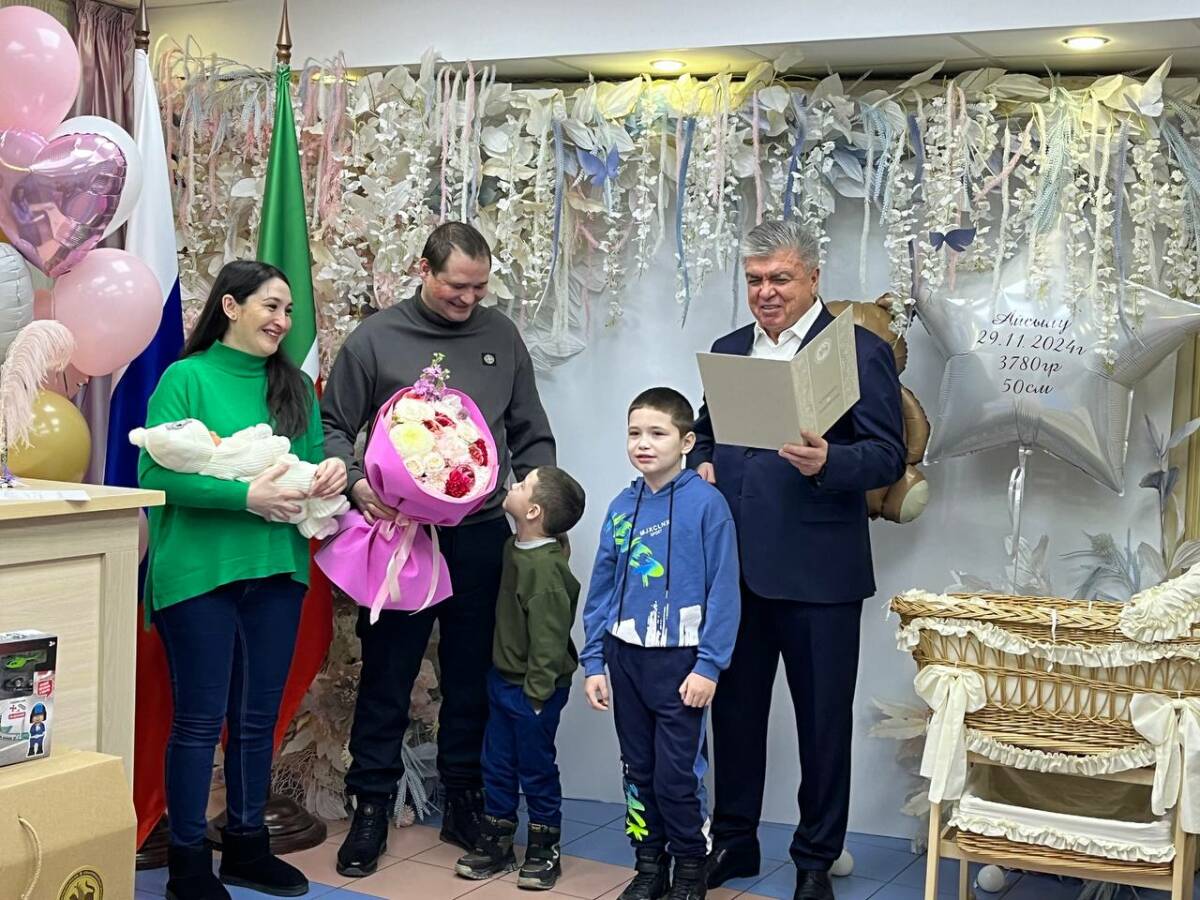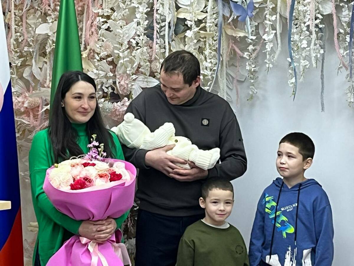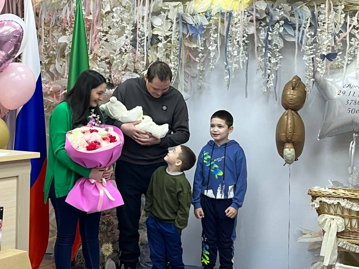 В семье набережночелнинского военнослужащего с позывным Хабиб родилась дочь. Она стала третьим ребенком у молодых родителей. Сегодня малышку и ее маму выписали из роддома. На этом радостном событии был и папа Айсылу — он находится в краткосрочном отпуске. Поздравить супругов пришли их родные и близкие, а также мэр Набережных Челнов Наиль Магдеев.