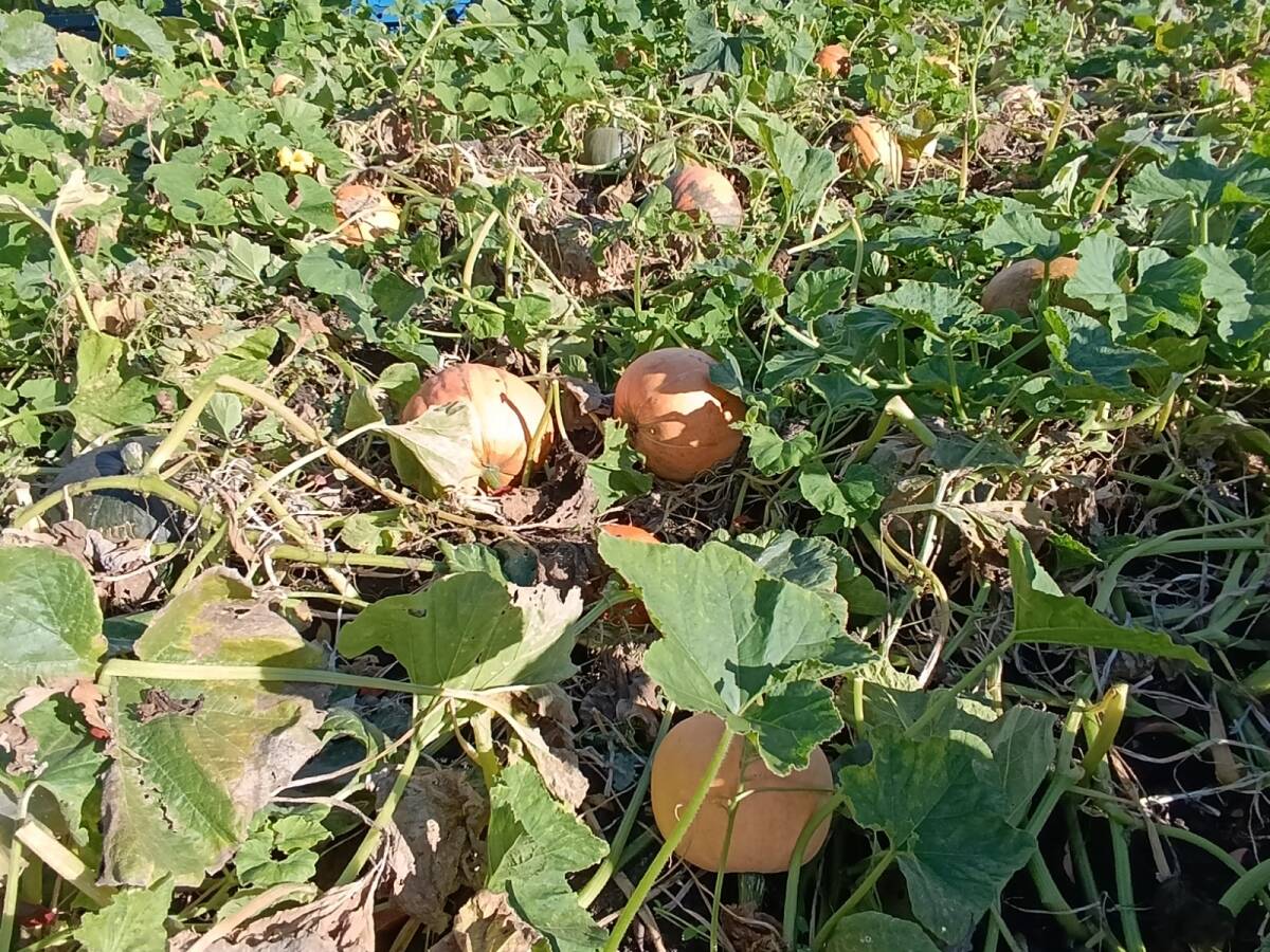 Огород Роза Кулдашевой усеян желтыми, зелеными, белыми тыквами разных размеров. Они растут не только на земле, но и на заборе и даже на дереве — самые крупные из них весят от 40 до 50 килограммов.