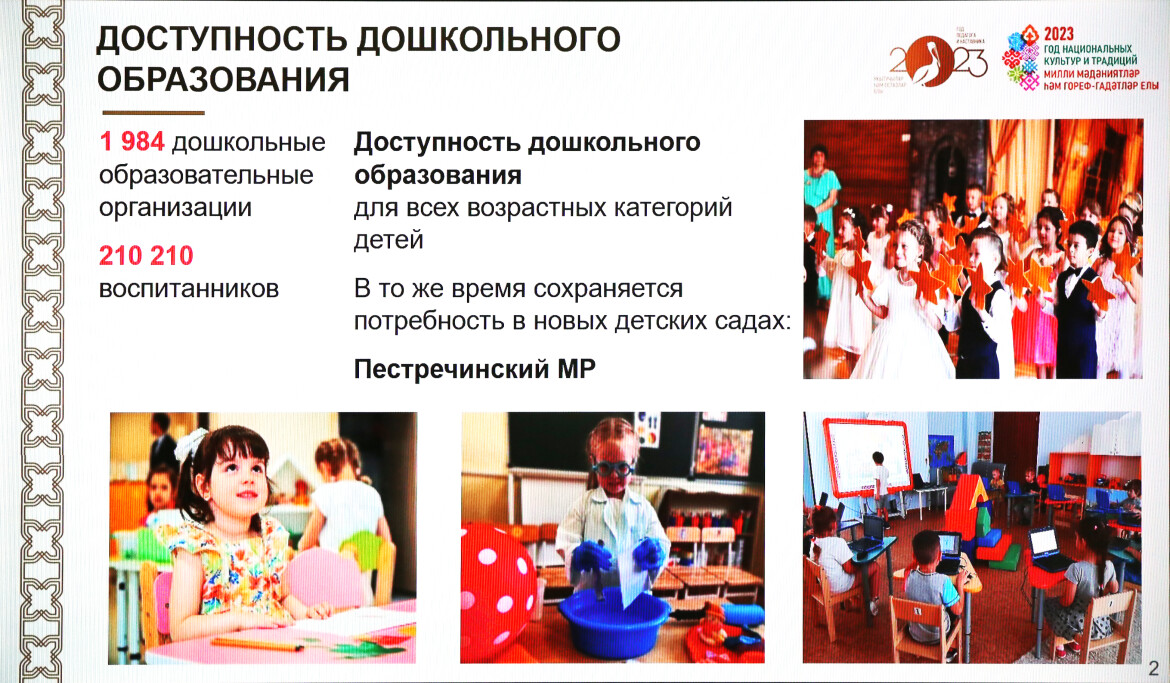 По ее словам, в целом по республике обеспечена доступность дошкольного образования для детей всех возрастных категорий.