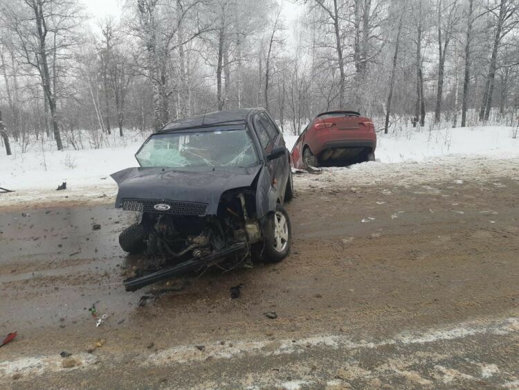 ДТП произошло накануне утром в Лениногорском районе, около села Зай-Каратай. Два автомобиля столкнулись на трассе, после чего один из них вылетел с дороги. Обе машины получили серьезные повреждения кузова.